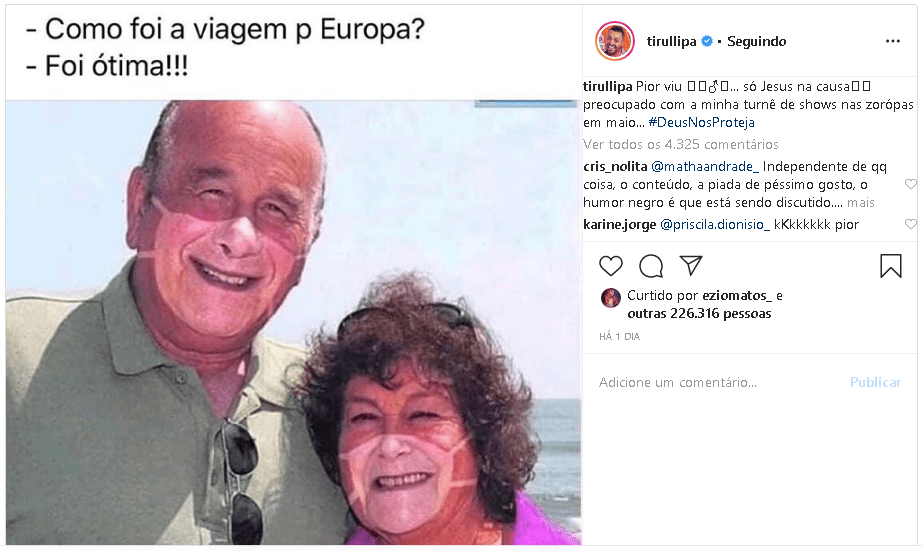 O Humorista Tirullipa postou uma foto no instagram, onde mostrava um suposto casal que viajou para a Europa.